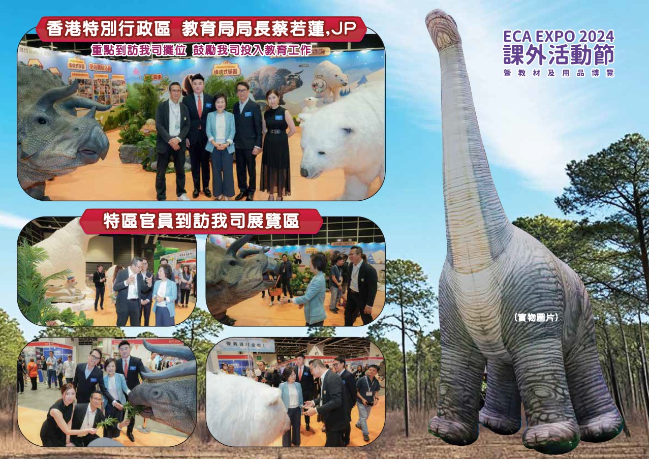 我們於 ECA EXPO 2024「課外活動節暨教材及用品博覽」展出主題式學習與 仿真動物教具(如恐龍、北極熊等),展區特別重點得到 蔡若蓮 JP 教育局局長 蒞臨參觀,並接待多位特區官員,鼓勵我司投入教育工作。在這場教育界盛會中,我們以情境體驗與跨學科互動體驗為核心,與多位嘉賓、教育界人士及家長交流創新教學方案,展現品牌對提升學習體驗與推動主題式學習的堅持。